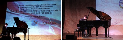 Left: Chinese student representative performed piano solo "Turkish March" Right: American student representative performed piano solo "Chopin's Revolutionary Etude"