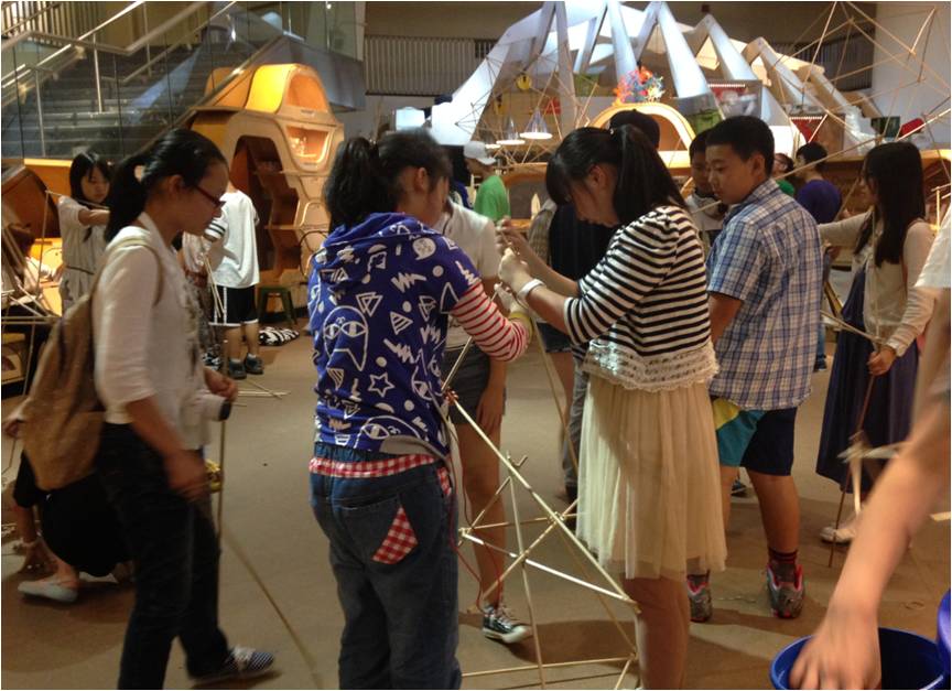 小使者们在科技馆内认真地参加设计试验项目,搭建创新产品