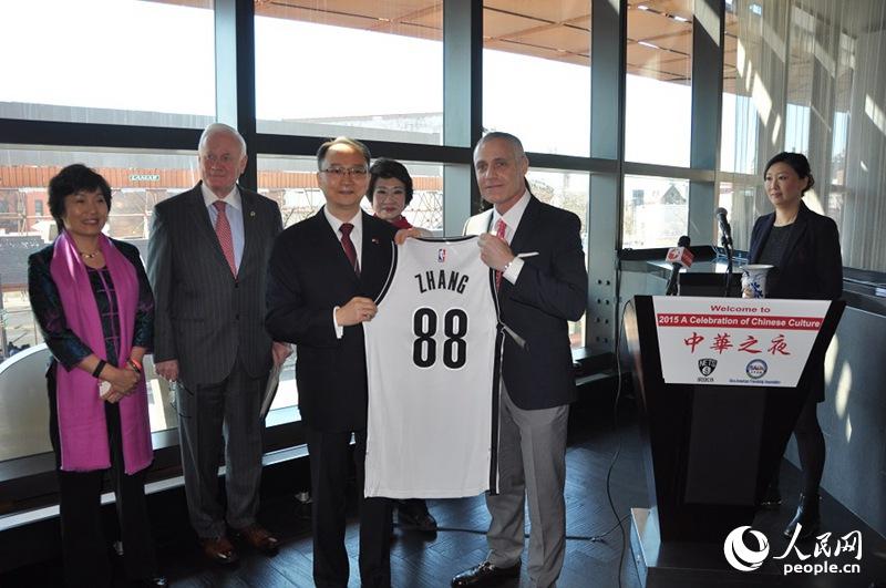 新华社北美总分社社长关心国、张锦平、篮网队CEO约马克、章启月大使、