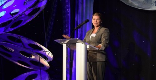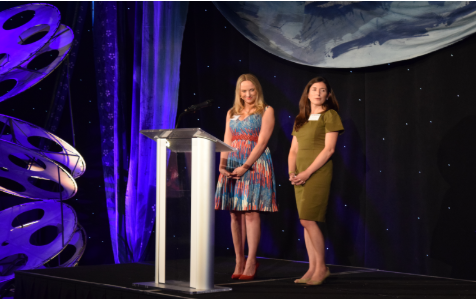 洛杉矶市长办公室创新团队总监Amanda Daflos (右)和洛杉矶妇女地位委员会委员Jackie Filla (左)致辞