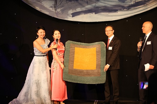 2017女性手工艺创新展品拍卖中美中友好协会会长张锦平(右二)为嘉宾颁发拍品