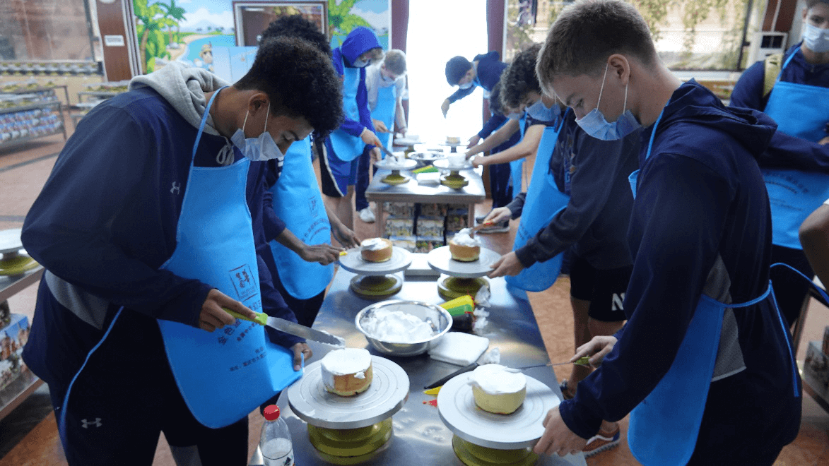 查米纳德高中篮球队制作蛋糕,在华生园感受创意烘培的乐趣