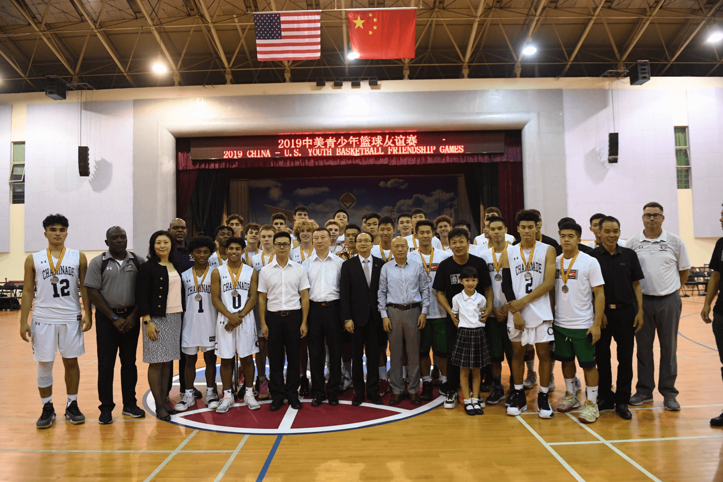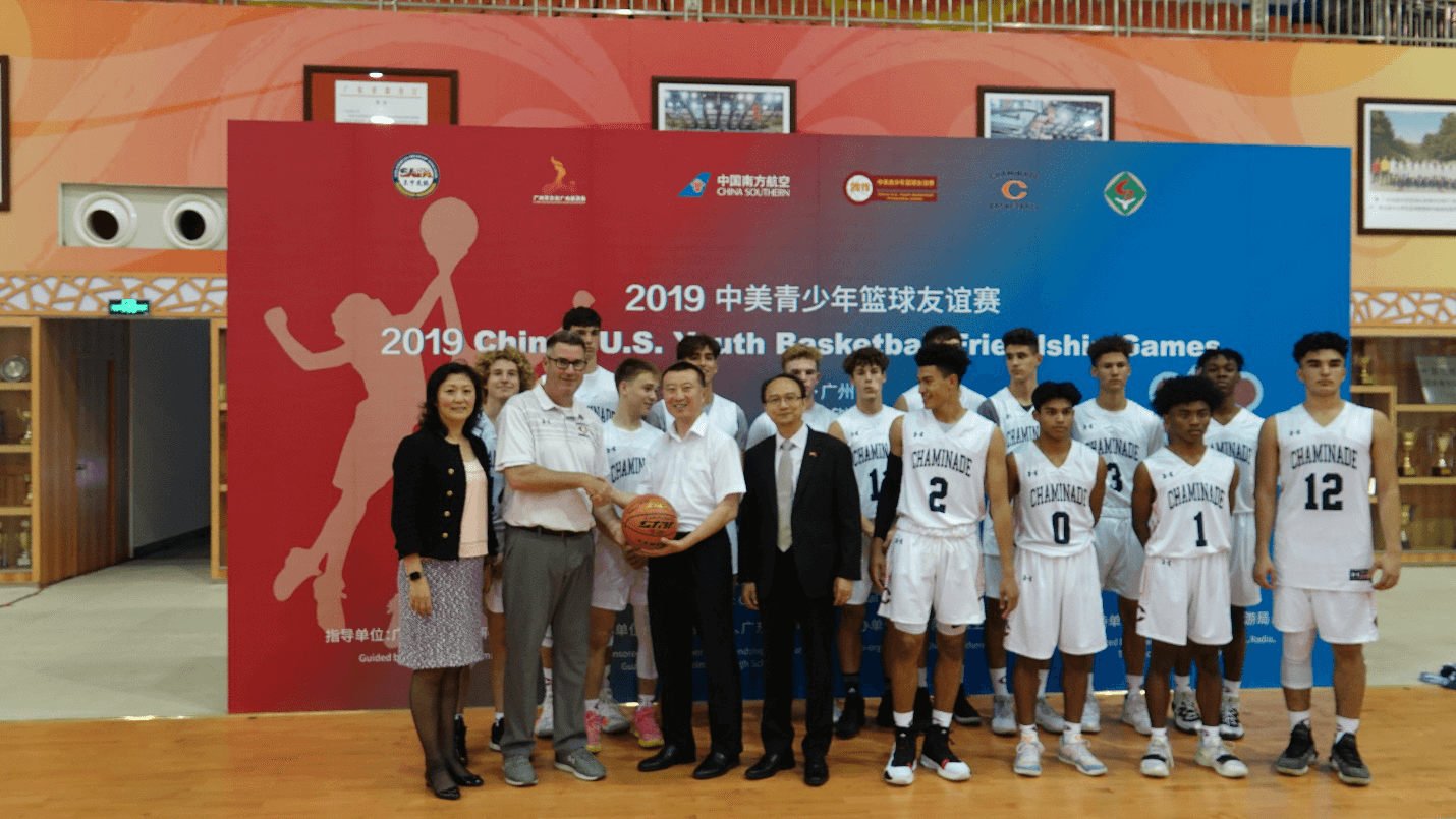 2019年10月20日,美中文化艺术基金会于广州、重庆举办的“2019中美青少年篮球友谊赛”及系列活动在重庆圆满落幕。此次参加友谊比赛的美国学校是加州洛杉矶查米纳德高中(Chaminade College Preparatory)是国际知名蓝丝带高中,培养了众多精英毕业生。该校曾是加州冠军球队,在加州高中篮球队中名列前茅。